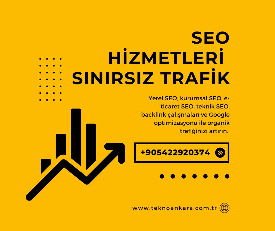 SEO hizmetleri ile Google’da üst sıralara çıkın! Yerel SEO, kurumsal SEO, e-ticaret SEO, teknik SEO, backlink çalışmaları ve Google optimizasyonu ile organik trafiğinizi artırın. Profesyonel SEO danışmanlığı için Tekno Ankara!